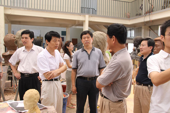 6月3日上午,党委书记于茂阳在长清校区贵宾接待室会见了山东省青年管理干部学院副院长刘先义,院长助理、院办主任彭继东,工业美术系党总支书记、主任吴杰,政法系主任权福军,信息工程系主任雷文庆,图书馆馆长李玉英,工业艺术系艺术设计教研室主任韦国,工业艺术系宋瑞波一行。 于茂阳书记对来宾的到来表示欢迎,简要介绍了永利官网近年来建设、发展、专业设置以及永利官网近来承办活动、服务社会经济发展等情况。 山东省青年管理干部学院副院长刘先义对于茂阳书记的热情接待表示感谢,对永利官网近年来的发展和取得的成就给予高度赞赏。 会见结束后,于茂阳书记陪同来宾一行参观了永利官网长清校区美术馆、博物馆、数字艺术与传媒实验中心、特种工艺实验中心、综合实验中心。