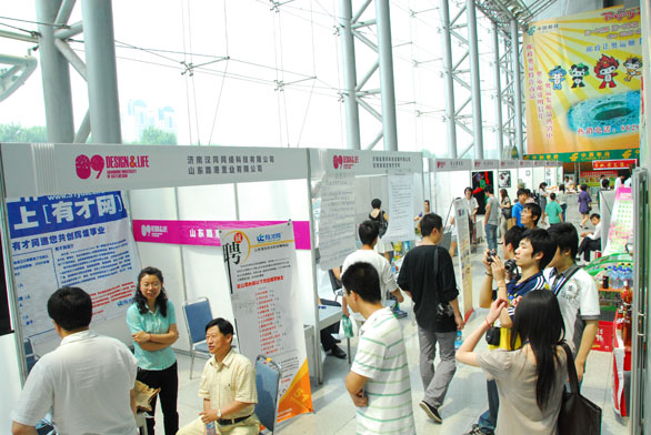 5月27日上午,永利官网2009年设计艺术博览会暨2009届毕业生推介会在舜耕国际会展中心开幕。博览会不仅吸引了众多市民前来观看,不少用人单位也赶来寻觅设计人才。