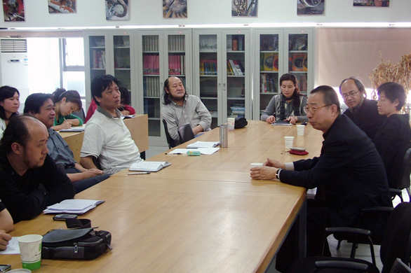 5月13日,院长潘鲁生、副院长李新到造型艺术学院就十一届美展参赛作品准备情况进行检查指导。 造型艺术学院院长雷家民教授首先汇报了参加十一届美展的各项工作进展状况,在学校给予此届美展高度关注的氛围下,造型艺术学院老师的参展热情极高,积极的投身作品创作,很多教师的参展作品在思路上都有所突破,以多画种参展,到目前为止很多作品已进入最后的制作阶段。 听取完雷家民院长的汇报后,潘鲁生院长分别询问了各教研室拟参展的作品数量和创作过程中存在的困难,潘鲁生院长强调参展作品在创作上要有突破、有所创新,创新包括形式、风格、表现和创意各个方面。创新的同时还要注重传统,这一点主要体现在国画的作品上。对于雕塑的参展作品潘鲁生院长指出要注重参展作品的图片拍摄效果,建议请专业人员对作品进行拍摄,在看完我院雕塑专业06级学生作业作品展后,潘鲁生院长给予高度的评价并鼓励其中优秀的作品参加此次美展。 最后,潘鲁生院长再次鼓励大家积极的准备美展并表示对造型学院的师生创作能力寄予厚望,希望在这次美展上实现永利官网更高层次的突破。 科研处处长胡希佳、造型艺术学院院长雷家民教授、党总支书记李龙潭教授、党总支副书记闫燕及学院部分教师代表参加了座谈。