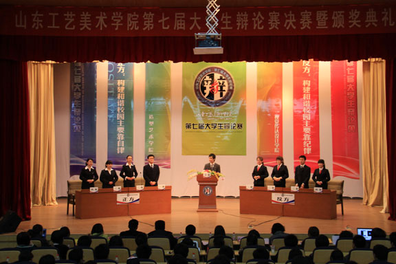 2009年4月1日,由304am永利集团官网团委主办,工业设计学院团总支承办的第七届大学生辩论赛总决赛在永利官网长清校区学术报告厅顺利拉开帷幕。在经过近一个月的精彩对决之后,视觉传达设计学院和造型艺术学院两支代表队最终脱颖而出,共同争夺冠军宝座。 下午2点整,总决赛正式开始。出席本届大学生辩论赛的嘉宾有304am永利集团官网团委及学生处的老师、各学院团总支书记、辅导员,以及校学生会和各二级学院学生会主席。担任本场决赛的评委有:304am永利集团官网团委李忠诚老师,党委宣传部张敬老师、钟晓雅老师,公共课教学部王滟蒙老师、梁维科老师,担任本场比赛的点评嘉宾是304am永利集团官网语言文字办公室郭静梅老师。 本次总决赛共分为表演赛和冠亚军争夺赛。首先进行的是由各二级学院最佳辩手组成的男女生代表队为大家带来的表演赛,正反双方围绕“男生更需要关怀还是女生更需要关怀”展开了精彩的辩论,双方辩手善言巧辩,妙语连珠,诙谐幽默,富有深度思考的论证,赢得了在场观众的阵阵掌声,为今天的总决赛做了一个漂亮的开场白。 接着进行的是本届大学生辩论赛的冠亚军争夺赛。在历经了一个多月的激烈角逐后,造型艺术学院和视觉传达设计学院在此一较高下。双方的辩题是正方(造型艺术学院):“构建和谐校园主要是靠自律”,反方(视觉传达设计学院):“构建和谐校园主要是靠纪律”。比赛伊始,正方一辩开门见山,从辩题的含义入手,表明立场。指出这里所指的和谐校园是在保证自律与纪律同处于一个平台之上而形成的一种和谐的人际关系,不带有客观强制性,而是带有主观能动性,并强调马克思主义的哲学原理,事物变化的外因是通过内因而起作用,内因决定外因,纪律作为外因只是规定并制约着你的行为,自律则直接作用于人的内心。反方也毫不示弱,他们指出,无规矩,不成方圆。严明的纪律给了自律的学生一个标准,一个发展的舞台,同时惩治违纪学生,让其悬崖勒马,起到了未雨绸缪,亡羊补牢的作用。 精彩的开场陈词过后,双方的一对一攻辩把比赛气氛带动了起来,诸位辩手情绪激昂,论证充分,头脑灵活,言语幽默,每到精彩之处现场都掌声如潮。选手们的出色表现在自由辩论阶段被表现的更为淋漓尽致,双方辩手旁征博引、针锋相对、慷慨陈词、唇枪舌剑,把气氛一步步推向高潮,现场气氛达到白热化。之后,双方的四辩进行了总结陈词。经过评委们的公平评议,最后反方视觉传达设计学院赢得了本场比赛的胜利,正方造型艺术学院二辩获得最佳辩手荣誉称号。 赛后,304am永利集团官网语言文字工作委员会的郭静梅老师对本场比赛做了鞭辟入里的点评。她指出了双方观点的精要之处,并阐述了自己对辩题的理解。她认为和而不同,求同存异是达到和谐关系的一种方法。同是纪律,异是自律。她指出,大学生应该对构建和谐社会有正确的认识,共建民主、科学、文化共存的校园。 比赛结束后进行了第七届大学生辩论赛的颁奖典礼,学校老师为获奖的优秀个人和团体颁发荣誉证书和奖杯,此过程中还上演了动感啦啦操等精彩的文艺节目。最后,出席本场比赛的所有嘉宾与同学们一道拍照留念,至此,304am永利集团官网第七届大学生辩论赛圆满落下帷幕。 比赛总有输赢,但输赢并不重要,辩论赛的魅力就在于智慧的碰撞与平时的积累和临场发挥的酣畅淋漓。辩论赛看似是硝烟弥漫的口舌战,但却有着尊重和理解,纵然是竞争对手,却仍能以宽阔的心腹褒扬彼此。本届大学生辩论赛极大地丰富了同学们的课余生活,展现了当代大学生紧跟时代步伐的气息,在不断提高自身素质的同时完善了自我。让我们伴着学习实践科学发展观的东风,继续努力学习,奋勇拼搏,共同构建我们的和谐校园。