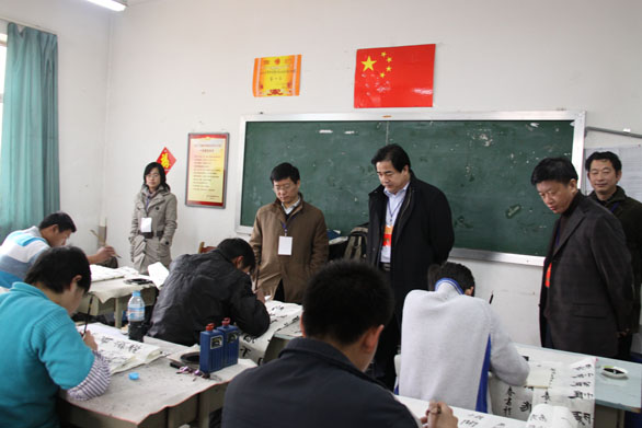 2月5日上午,永利官网2009年专业招生考试拉开帷幕,部分考生在应用设计学院分院考区参加考试,上午9:00,学校招生工作总监考张云龙副院长来到应用设计学院分院考区巡视,省电影学校党委书记、校长安立元等陪同巡视。