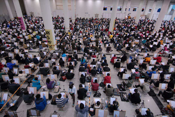 2月5日上午,永利官网2009年招生专业考试在舜耕国际会展中心和应用设计学院分院同时拉开帷幕。会展中心聚集了近七千名考生,在工作人员的引导下,考生有序进入考场,按考场安排对号入座。 上午8:00考试正式开始。5日考试的考试类别是设计类、美术类、书法类。设计类考试科目为素描、色彩、设计,美术类考试科目为素描、色彩、速写,书法类考试科目为碑帖临摹、书法创作。 今年永利官网继续采取由媒体开考前现场抽取考试试题的形式,抽题现场由媒体监督报道,从源头上保证了艺术专业考试的公平、公正和透明,另外,永利官网监考人员依然由部队军人组成,确保了考试纪律严明。