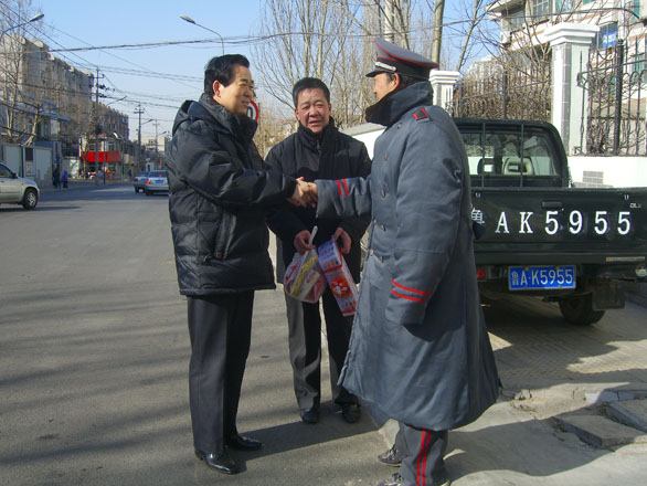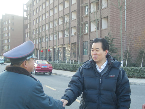 “银鼠辞旧岁,金牛踏春来”。在新春佳节到来之际,2009年1月24日,副院长刁在祥带领后勤管理处副处长杨尚志,保卫处副处长张利等相关人员到长清校区和千佛山校区,亲切慰问了后勤管理处、保卫处春节期间在一线的值班人员。 刁在祥副院长每到一处都代表学校领导向值班人员带去了春节的问候,向他们拜年,并详细询问了各值班单位春节期间的工作安排情况,对他们春节期间仍坚守工作岗位的奉献精神表示赞赏,勉励大家继续发扬无私奉献精神,兢兢业业、认真扎实地履行值班职责,确保全校教职工度过一个欢乐、祥和的春节。 各位值班人员对刁在祥副院长代表学校领导于百忙之中看望大家非常感动,一致表示一定不辜负学校领导的重托,以更高的热情努力工作,确保学校寒假期间的后勤保障和安全稳定。