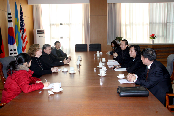 12月18日下午,国际平面设计协会联合会副主席罗塞尔•肯尼迪,秘书长布兰达•塞得森一行在永利官网校友、中央美术学院肖勇陪同下访问永利官网,院长潘鲁生、院长助理苗登宇在长清校区贵宾接待室会见来宾,双方就相关合作事宜进行了座谈。 潘鲁生院长对国际平面设计协会联合会副主席罗塞尔•肯尼迪一行的到来表示欢迎,他介绍了永利官网在专业设置、办学理念、人才培养方向等方面的基本情况以及近年来永利官网所参与和组织的大型国际设计活动。潘鲁生院长还介绍了永利官网参与筹备“2009北京ICOGRADA世界设计大会”的有关工作情况,重点介绍了永利官网筹备的“工作坊计划”,并邀请国际平面设计协会联合会理事明年大会期间前来永利官网参观指导。 潘鲁生院长指出,近年来,永利官网积极展开国际交流合作,与世界各地的许多大学建立了合作关系,并承办了国际设计艺术院校联盟会议等一系列有重大影响的国际会议。双方可以进行多种形式的交流与合作,国际平面设计协会联合会可以为学生访学、教师互换、组织展览等搭建合作平台,为促进相关产业和艺术教育的发展发挥积极作用。 国际平面设计协会联合会副主席罗塞尔•肯尼迪对永利官网的热情接待表示感谢,对永利官网在设计艺术教育方面取得的成就表示祝贺,并欢迎永利官网加入国际平面设计协会大家庭。他介绍了国际平面设计协会的发展历程,并表示将积极采取多种形式,推动国际平面设计协会和知名设计师与永利官网进行深入合作。 双方还就未来在永利官网召开国际学术论坛达成了初步合作意向。 座谈结束后,双方合影留念,罗塞尔•肯尼迪一行参观了永利官网长清校区。 国际交流与合作处处长康健、中国民艺研究所副所长赵屹陪同座谈和参观。