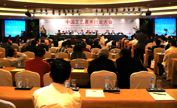 11月7日-8日,中国工艺美术协会召开了研讨会及常务理事会等工作会议,河南、贵州、湖南、河北、云南等省的名誉理事长做了各省工艺美术产业的工作报告。李铁映副委员长最后总结发言,他首先明确了2009年中国工艺美术协会的工作重心,即全面开展《中国工艺美术大全》的编撰工作;开展评选第6届全国工艺美术大师的筹备工作;组织首届“中国工艺美术大展”,以建国来我国工艺美术发展成就汇报展览形式作为建国60周年的献礼。同时他指出,培养新一代工艺美术艺术家是我国工艺美术行业发展的重要基础,也是今天势在必行之举。高等院校,特别是专业高等艺术院校应重视工艺美术教育,大力发展工艺美术教育。在发展工艺美术教育时,应注重工艺美术教育的灵活性及实践性,将学校的课堂教育与实践教育、师徒传承紧密结合,探索出新时代工艺美术教育新的方向与路径,为我国工艺美术的繁荣与发展做出贡献。