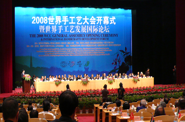 世界手工艺理事会(WCC)是1964年成立的一项旨在推动各国各民族传统手工技艺的抢救、保护与交流,不断推进传统手工技艺的现代演变,融入当代全球生活文化方式的国际艺术组织,属于联合国教科文组织的专业理事会。自成立以来世界手工艺理事会为世界不同民族与国家在批量化、机械化现代设计艺术不断发展壮大的语境下保护和振兴传统手工技艺做出了重要贡献。1991年我国开始加入世界手工艺理事会。17年来,理事会为我国手工艺行业提供了与世界交流合作的机会,同时也为世界打开了了解中国手工艺行业的一扇窗。由我国主办的本届世界手工艺大会的主题是:振兴世界工艺美术、传承人类手工技艺、发展文化创意产业、共创手工劳作辉煌。原全国人大常委会副委员长、中国工艺美术协会名誉理事长李铁映以及全国不同省份的领导人均出席了会议。参加会议的世界手工艺理事会的国际代表200余人,国内代表400余人。