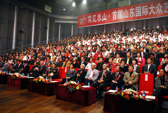 10月22日晚,儒风泰山•首届山东国际大众艺术节开幕式暨首届“泰山文艺奖”颁奖典礼在山东电视台播出。省委常委、宣传部长李群为大众艺术节揭幕,省人大常委会副主任时立军,省政协副主席齐乃贵等领导以及来自全国各地的文艺工作者及各界群众代表一同出席了晚会。