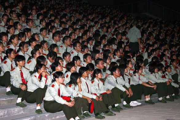 活动正式开始前,新生军训团在各营教官的带领下排着整齐的队伍,迈着有力的步伐进入指定区域。随后,各营之间又举行了激烈的拉歌比赛,响亮的歌声此起彼伏,显示了永利官网08级新生良好的精神风貌和积极地进取精神。电影开始放映后,同学们立刻安静下来,体现了良好的纪律性。随着电影情节的逐步深入,同学们慢慢的被影片中中国特种军人坚强的意志和强烈的爱国主义精神所感动。电影放映结束后,同学们在教官的带领下有序地离开广场。