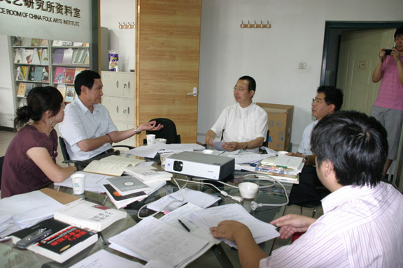 在中国民艺研究所,到访领导视察了“山东农村文化产业调查报告”课题组工作情况,并与相关人员就农村文化产业的开发、扶植、推广、产业提升等相关问题进行了座谈。