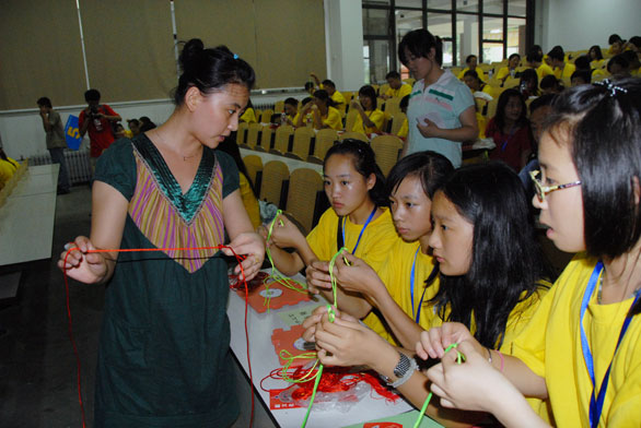 上午,夏令营的成员们参观了永利官网民俗博物馆、刺绣馆、孙长林艺术馆以及综合实验中心、现代手工艺术试验中心,观看了学校宣传片和永利官网学生创作的动漫作品。下午,学校安排营员们与民间艺人、专家以及永利官网学生开展互动体验,学习剪纸、书法以及制作中国结等。