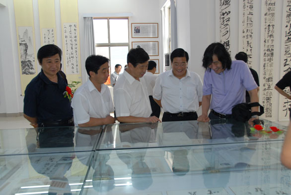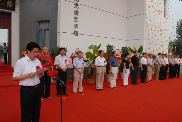 中国书协展览部著名书法家郑培亮代表中国书协宣读了贺信,聊城市副市长刘冠凤,中国书协副主席、省文联副主席、省书协主席张业法等也先后致辞,对阳光楼艺术馆的成立表示祝贺。