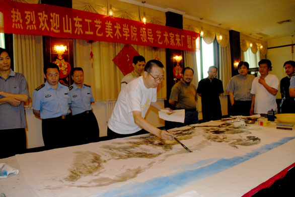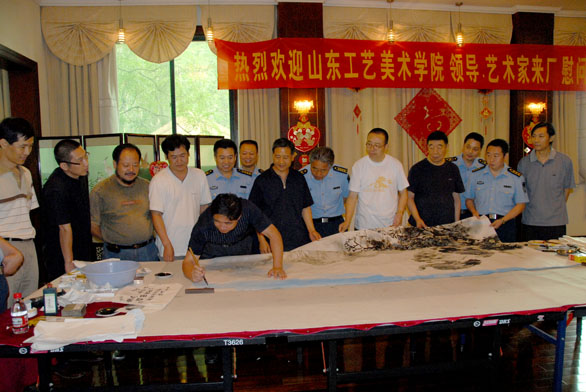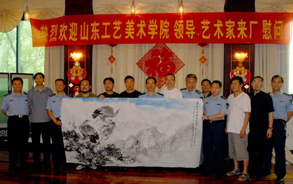 带领永利官网著名书画家吴永福、李龙潭、李凤荣、卢洪祥、赵坤、王瑞青等来到济南军区空军某部对部队官兵进行慰问,与部队官兵共庆建军节,再续军民鱼水情。