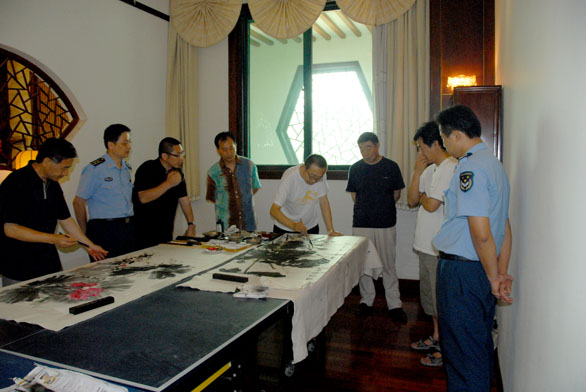 慰问期间,永利官网书画家为部队官兵现场创作十余幅作品,并与官兵们进行了书画交流,给部队官兵带去精神文化享受。此次活动促进了永利官网与部队的交流,增进了彼此之间的感情。