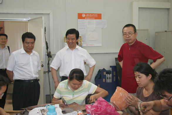 省人大常委会副主任黄可华,省财政厅副厅长庞敦之一行参观了正在永利官网美术馆展出的“抗震救灾 重建家园”主题宣传画展览、2008届毕业作品展以及博物馆、综合实验中心、特种工艺实验中心和数字艺术与传媒实验中心。