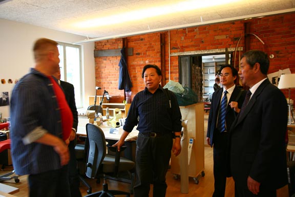下午,考察团来到了卡尔马大学设计学院进行参观访问。考察团走访了设计学院的产品设计工作室、视觉传达工作室、家具设计工作室和玻璃工作室,详细了解了设计学院的专业设置、课程设置、授课模式及在校生的学习情况。卡尔马大学设计学院丰富的教学设备、优雅的教学环境以及灵活务实的教学方式给考察团成员留下了深刻的印象,特别是他们的玻璃工作室及其加工车间、玻璃制品商店以及玻璃展览馆,其运作方式和教学研究模式为我们提供了很好的借鉴和启示。同时,考察团还就两校之间的交流与合作进行了磋商。