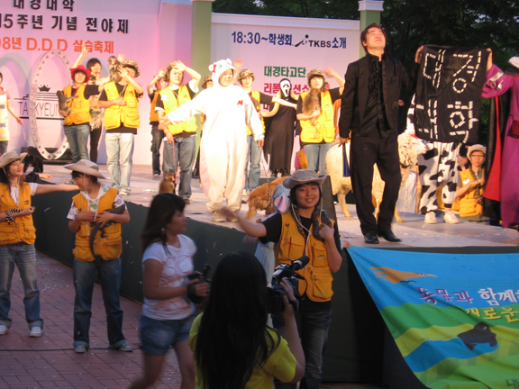 在大庆大学,永利官网师生代表受到了大庆大学的热情接待。下午,在学校领导的陪同下永利官网师生代表参观了大庆大学的化妆与美容美发实验室,并观摩了大庆大学化妆专业的教学情况。晚上,韩国大庆大学俞进善校长会见永利官网到访师生并举办欢迎晚宴。晚宴后永利官网师生及访韩学者曾爽受邀观看大庆大学精彩的模特服装表演演出。演出后,中国著名化妆师吉米与永利官网师生进行了专业知识交流。