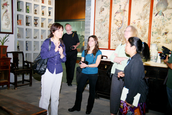美国俄勒冈大学、中佛罗里达大学“中国民艺国际视频网站——中国藤”项目组成员考察中国传统园林建筑 [附图]