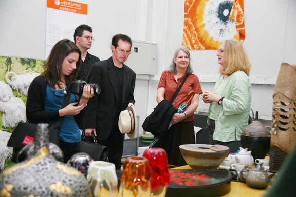 2008年5月8日上午,以美国俄勒冈大学建筑与艺术学院执行院长多戈•布兰蒂教授、美国中佛罗里达大学遗产联盟中心主任克瑞斯汀•丛东教授为代表的“中国民艺国际视频网站——中国藤”项目组成员一行8人访问永利官网,在中国民艺研究所副所长赵屹的陪同下,先后参观了永利官网综合试验中心、特种工艺实验室中心、数字艺术与传媒实验中心和美术馆、博物馆。