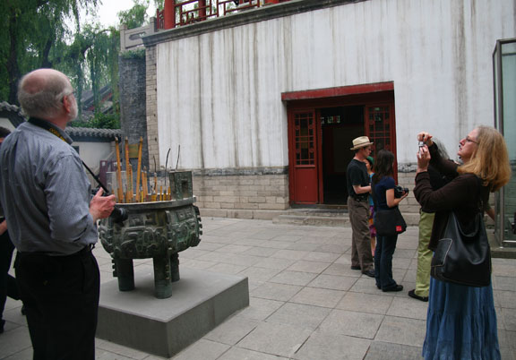 2008年5月7日下午,在304am永利集团官网中国民艺研究所副所长赵屹的陪同下,由美国俄勒冈大学建筑与艺术学院执行院长多戈•布兰蒂教授、美国中佛罗里达大学遗产联盟中心主任克瑞斯汀•丛东教授为代表的“中国民艺国际视频网站——中国藤”美方项目组成员一行8人游览了兼具中国南北方园林建筑特色的代表性园林——趵突泉,考察中国传统园林建筑艺术。