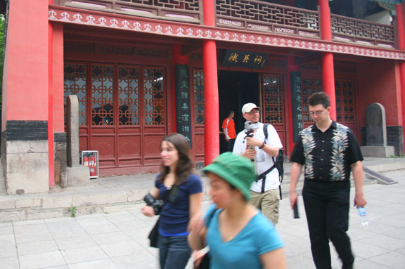 美国俄勒冈大学、中佛罗里达大学“中国民艺国际视频网站——中国藤”项目组成员考察中国传统园林建筑 [附图]