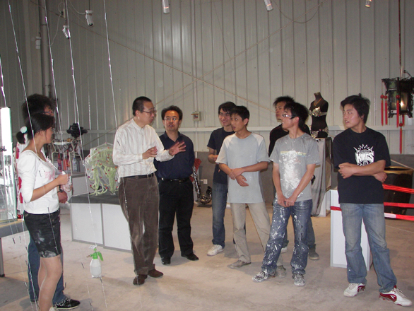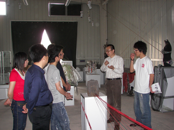 院长来到特种工艺试验中心雕塑工作室,兴致勃勃的观看了造型艺术学院05雕塑1、2班的雕塑作品展“开放空间”,并就雕塑作品的设计与制作对学生进行了深入的指导。潘院长指出,一件好的作品,既要有先进的创作理念,又要有好的艺术创作形式。潘院长建议大家要多读书,不断提高自身的理论修养,这样才能逐步形成先进的创作理念,创作出好的作品。