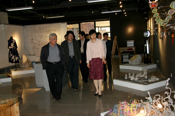 汇报会开始前,副院长李新、张云龙等陪同考察专家组成员参观考察了永利官网千佛山校区美术馆、应用设计学院妆扮艺术设计专业工作室和实验室。