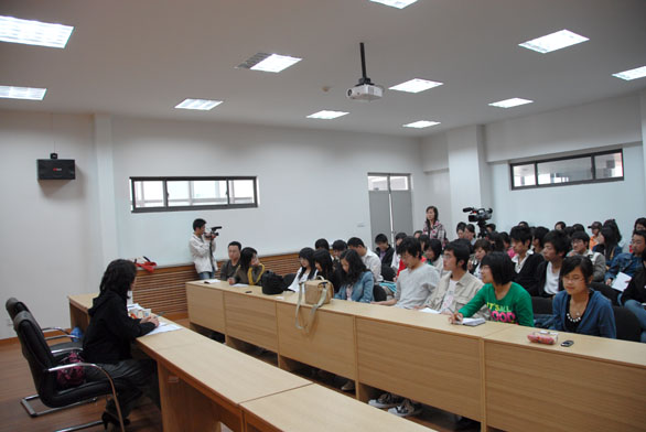 徐玉芹女士此次讲座的题目是《从艺考新闻报道谈如何做好新闻报道工作》。她指出,针对新闻报道时效性、突发性、贴近性、趣味性、重要性等特点,应重视新闻采访技巧的学习和应用,培养善于发现新闻的眼睛,更要时刻注意保持新闻从业者的职业道德。徐记者的讲座内容丰富,事例生动,不时博得在场学生的阵阵掌声。讲座结束后,徐玉芹女士回答了在场学生的提问。