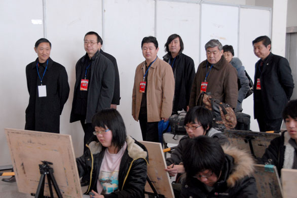 2月20日上午,省教育招生考试院副院长董良军,普招处处长张志刚一行来永利官网2008年招生专业考试现场济南舜耕国际会展中心视察。院长