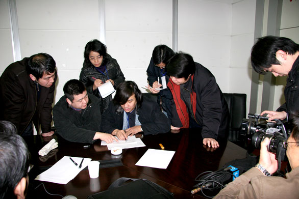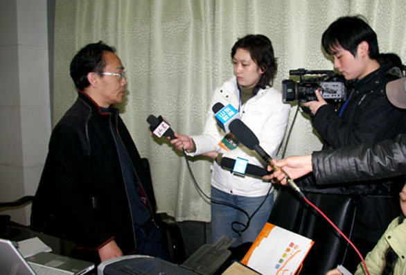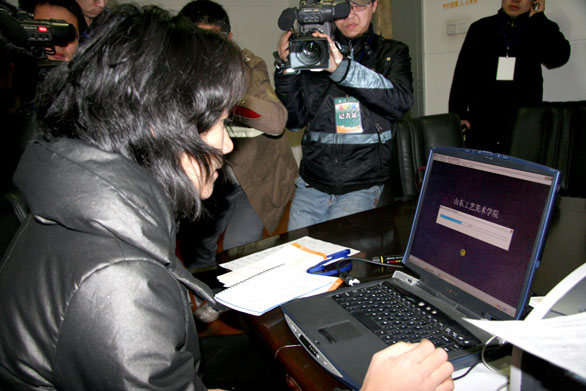 2月20日,永利官网2008年招生专业考试在济南舜耕国际会展中心拉开帷幕。上午6时30分,校领导、纪委人员,审题专家和山东电视台、齐鲁电视台、山东商报、山东教育电视台、济南时报等媒体记者聚集到招生现场办公室。在纪委人员和媒体记者全程监督下,媒体代表抽取首场考试试题。