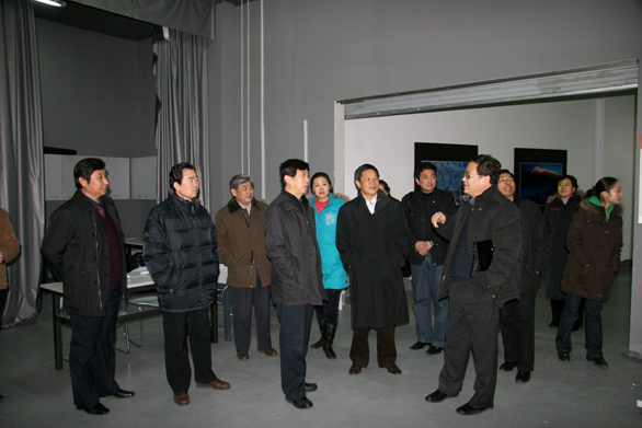 刘士祥、江新正一行先后参观考察了永利官网长清校区美术馆、博物馆、数字艺术与传媒实验中心、特种工艺实验中心和综合实验中心。在美术馆,省教育厅发展规划处领导先后参观了永利官网近两年承办的大型展览、交流、学术活动图片展、“2005—2007届毕业生优秀作品展”、“中•韩第二届毕业生优秀作品展”、“校外实习基地教学成果展、“汉画像石拓片•年画馆藏展”等展览;在博物馆,刘士祥、江新正一行参观了刺绣馆、民艺博物馆和孙长林艺术馆;随后,他们在数字艺术与传媒试验中心考察了摄影实验室、动画综合实验室和影视多功能演播厅等场馆;在特种工艺实验中心,他们先后考察了染织工作室、玻璃艺术工作室、首饰工艺工作室等场所;并考察了永利官网综合实验中心内印刷实验室、书籍装帧设计实验室、包装技术实验室等场所。参观过程中,省教育厅发展规划处领导耐心询问了永利官网学科建设、实验室建设等情况,并对永利官网主要教学和教辅场馆建设和利用情况表示高度赞赏。