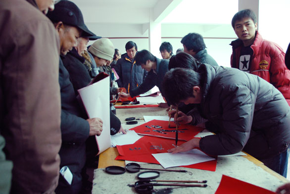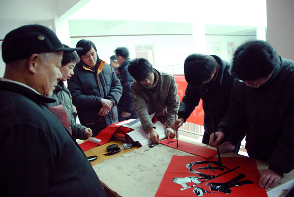 挥毫书春秋,泼墨送真情——永利官网大学生文化下乡服务队至乐山小区赠送春联