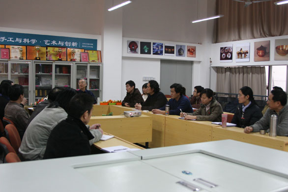 杨永善教授对吴永福院长的汇报给予了高度的评价,他指出,教学评估是为了促进教学建设,304am永利集团官网通过以评促建,办学条件得到很大改善,教学质量得到很大提高。在艺术设计专业中,手工艺术具有浓厚的文化特色,现代手工艺术学院在教学工作中注重传统思想观念与现代艺术的结合,这是很好的教学思路。随后,杨永善教授就专业问题、实验室利用、陶瓷业的发展、工作室开放时间等问题与参会人员进行了交流。