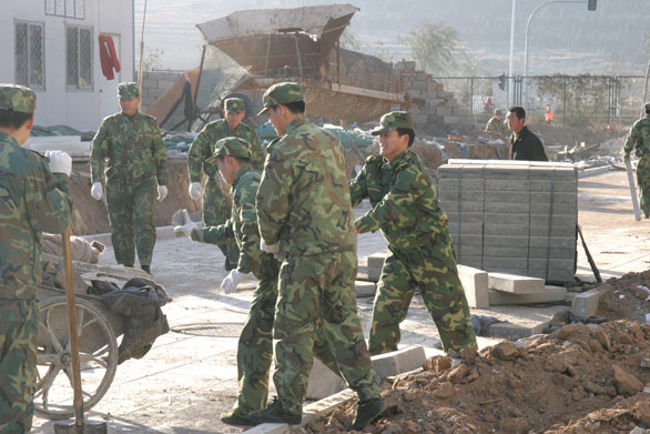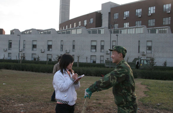 12月16日,又是一个寒冷的清晨,济南军区坦训基地某部官兵们早早来到永利官网,又开始了第二天的奋战。凛冽的寒风,滚滚的尘土,隆隆的机器声和忙碌的身影构成一副军民共建和谐校园的生动画面。他们的每一滴汗水都折射出对这个校园的热爱,对军民鱼水情的肯定。永利官网负责向部队官兵提供工具、协调任务的后勤管理处毕剑翎副处长,济南军区坦训基地吴秀刚处长、刘长议营长以及部分官兵接受了《山东工艺美院报》记者站学生记者的采访。