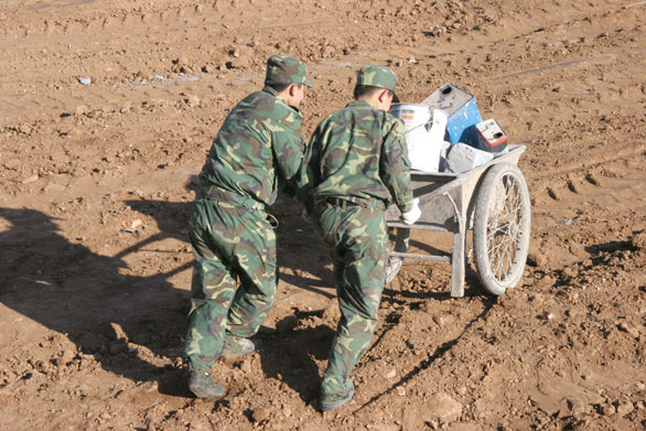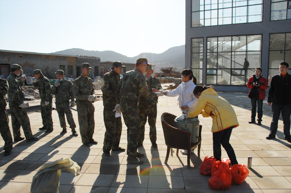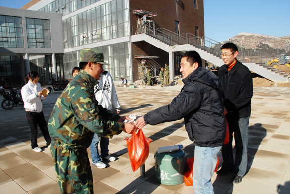 院长在外地电话指示有关部门做好协调工作,王秀存副院长亲临现场与部队首长共同指挥,总务处祁建萍、毕剑翎副处长向部队官兵提供工具、协调任务分配;人文艺术学院团总支书记杨端举也带领该院学生慰问官兵,向官兵送去了热水和水果。官兵们和永利官网师生高涨的工作热情驱走了严寒,施工现场掀起了一波又一波的工作热潮。一辆辆穿梭不息的小推车,一把把的飞舞不停的铁锨,一滴滴不时滴落的汗珠,一声声温馨的问候,一杯杯滚烫的热水,构成了一幅“军民共建鱼水情”的和谐画面。