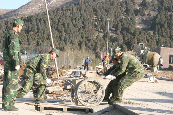 已近寒冬,坦训基地官兵却在凛冽的寒风中与基建工作者一起以高涨的热情投入到学校校园建设工作中。永利官网师生也被坦训基地官兵的热情所感动。