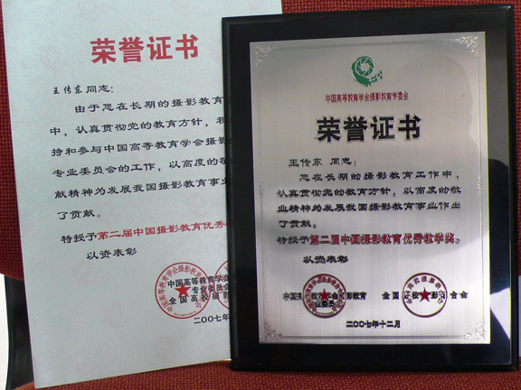 2007年11月10日,中国学院奖第二届摄影教育奖评选工作在南京视觉艺术学院进行。中国摄影教育奖是教育部艺术教育委员会、中国高等教育学会摄影教育专业委员会、全国高校摄影联合会为了适应我国摄影教育事业的发展,表彰和鼓励长期以来在摄影教育事业上辛勤耕耘,取得优异成绩,做出突出贡献的教育工作者而设立的。
