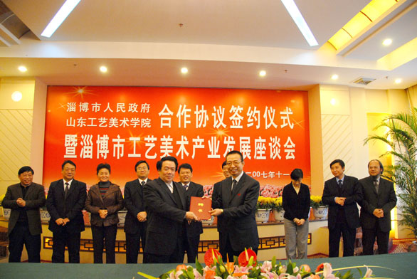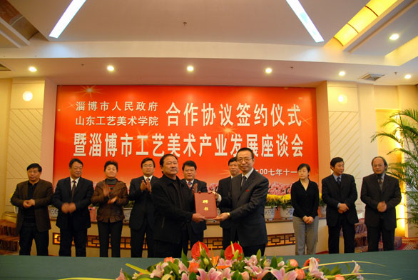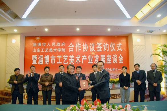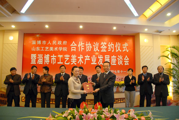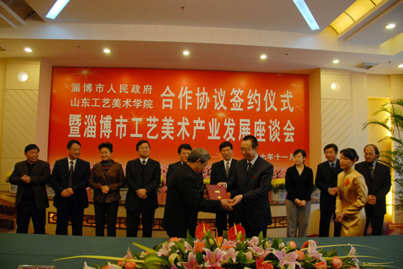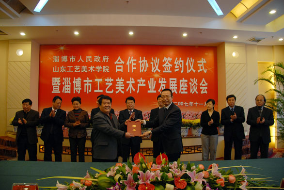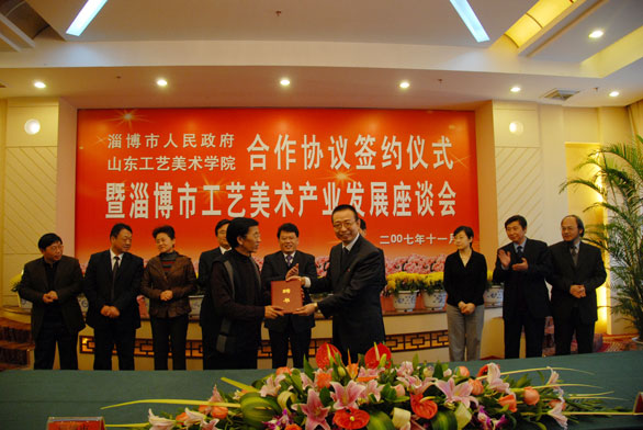 ,副院长李新,院长助理、两办主任王立果出席聘任仪式。淄博市有关部门负责人、工艺美术大师,永利官网有关部门负责人参加了签约仪式。院长