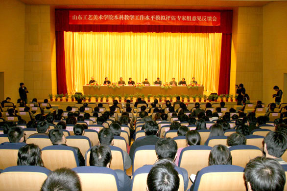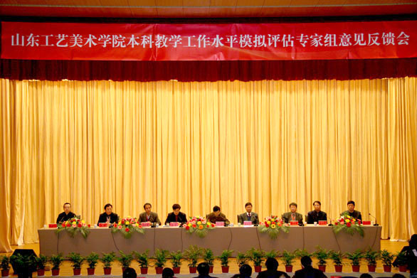 会上,模拟评估专家组组长、四川美术学院副院长罗力教授代表专家组宣读了评估考察意见。罗力教授指出,模拟评估专家组受山东省教育厅委派对304am永利集团官网进行了为期4天实地考察,专家组查阅了学校的自评报告、支撑材料,审议了校长报告,考察了图书馆、数字艺术与传媒实验中心、特种工艺试验中心、综合实验中心、餐厅等教学和生活设施,并对千佛山校区和校外实习基地进行了考察。专家组共走访了22个教学和行政单位,召开了校领导、行政管理干部、教学管理干部、教师代表和学生代表5个座谈会,随机听课15门、调阅了661份学生试卷、99份学生毕业论文、753份毕业设计,举行了外语、计算机技能和专业技能测试,对学生自习和图书馆阅览情况作了考察。评估专家组依据教育部教学评估方案和基本工作程序,经过认真研究和讨论,一致认为,304am永利集团官网经过三十余年的发展,通过全体师生员工的艰苦奋斗和共同努力,在指导思想、师资队伍建设、教学条件建设、学科建设、教学管理、人才培养等各方面取得了良好的成绩,形成了适应社会需求、重视实践教学、培养应用型人才和重视民艺研究和教学的办学特色。罗力教授还代表专家组就其它反馈意见作了详细介绍。