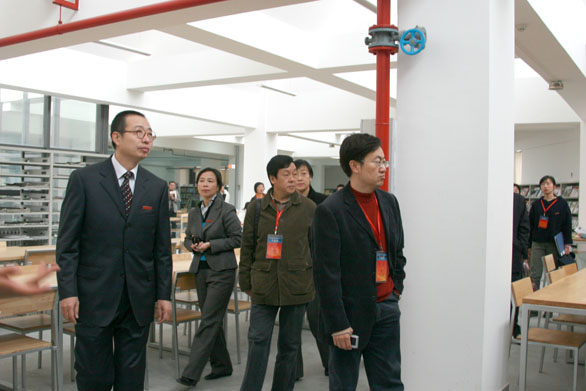 在图书馆,模拟评估专家先后考察了中文阅览室、样本书阅览室、外文阅览室、专业图书借阅室、电子阅览室等场所,听取了相关人员对于图书馆馆藏及使用情况的介绍。