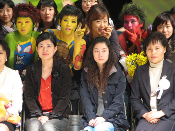29日下午,学生代表团一行在善邻大学皮肤美容管理科长姜谨荣的陪同下观摩了学生作品展的整个准备过程,听取了姜谨荣科长对化妆设计艺术教学与社会服务等情况的介绍。善邻大学在妆扮艺术方面具有一定的经验和知名度,目前又与日本、菲律宾等妆扮学院有良好的合作关系。善邻大学的皮肤美容管理专业在韩国排名第四,是两年制学科,第一年主要学习化妆专业的大体概况,第二年学生依据自己的兴趣选择侧重点,比如:美发、皮肤美容、美甲、服饰等。学生在假期必须到皮肤美容管理室、美甲工作室或婚纱影楼进行实习,大学两年期间无实习经验的学生不可毕业。重点强调学生的技能性、实践性,培养学生的综合能力以适应社会和市场的需求。