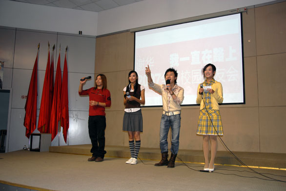 歌手谢华把几首最动听、最感人的原创歌曲献给了大家,《一直在路上》、《情人博客》、《奈何桥边》、《鱼的眼泪只有水知道》等一首首歌曲唱出了他的心声,感染了在场的各位同学和观众,引起阵阵掌声。