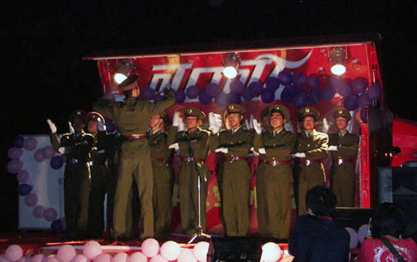 晚会以武舞协会带来的《谁是MVP》火爆开场。郝浩涵同学一曲悠扬的吉它弹唱——《千年泪》,陶醉了现场所有观众,仿佛把人们带入了《天外飞仙》那梦幻的仙境;济南军区坦克训练基地的教官们给大家带来了劲舞《军旅节奏》,那强劲的舞姿,奔放的激情,博得阵阵喝彩;歌曲联唱《Honey,Hoeny,Honey》、《向左走,向右走》、《抓不住的她》、《再见》,动听的歌喉,欢快的节奏,年轻的人们心都在飞,点燃了北大山下的热情;威武的气势,绝佳的舞技,武术协会带来了一段精彩的武术表演;教官合唱《有一个道理不用讲》,使晚会迎来了有一个高潮,现场气氛火爆,欢呼雷鸣,掌声如潮,各营新生竞相给自己的教官加油喝彩。由王晶等同学带来的搞笑小品——《爆笑海选》进一步把晚会推向高潮,现场掌声不断,笑声连绵;一段华丽惊艳的Coseplay——《天使禁猎区》,展现了工艺美院学生的才华横溢,人才辈出,让在场2007级新生开了眼界;马凯同学一曲原创歌曲《家》,不仅唱出了自己的心声,也表达了2007级所有新生的心声,让人们在这团圆的节日里想起家,想起爸爸的叮嘱、妈妈的唠叨,想起他们为生活而奔波忙碌,更加激励着每一个人去拼搏努力;最后,王梓同学给大家带来一首好听的歌曲《第一天》,在婉转嘹亮的歌声中结束了本次晚会。