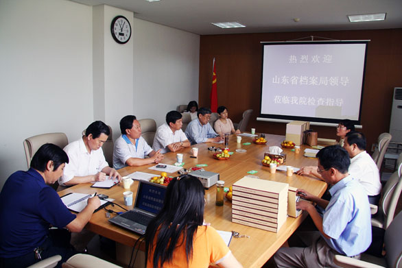 9月25日上午,山东省档案局曹明珍局长,法规经科处王秀生处长、武剑侠科长一行莅临永利官网,检查指导并考核永利官网档案管理工作。校党委书记于茂阳,党委副书记郭兆志,副院长王秀存、李新、刁在祥,院长助理、两办主任王立果以及档案室的负责老师出席工作会议。
