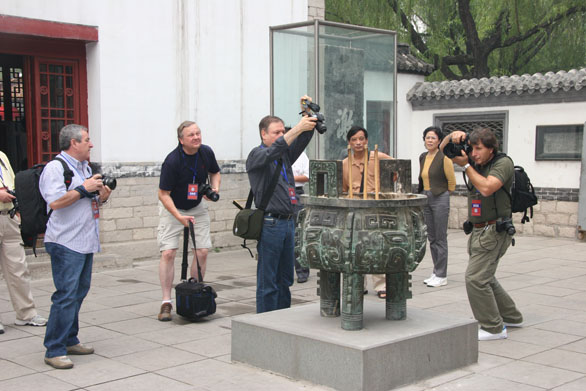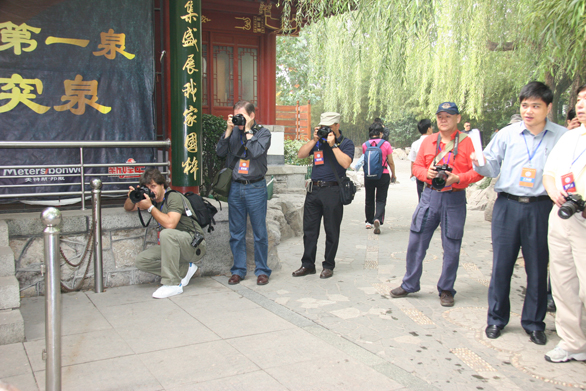 9月23日上午,参加齐鲁国际摄影展的各国摄影大师齐聚趵突泉公园采风。