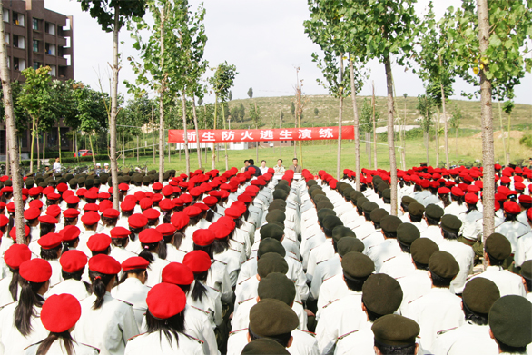 9月20日上午, 永利官网在学生宿舍楼广场组织2007级新生进行消防逃生演习。副院长刁在祥、长清消防大队工程师韩广西以及保卫处、学生处相关人员出席演习,全体2007级新生参加了此次演习。