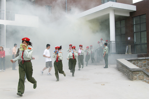 讲座结束后,同学们进行了现场灭火和逃生演习。