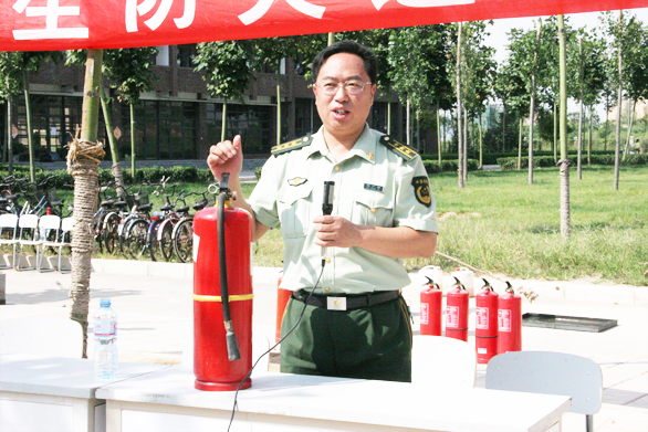 随后,韩广西工程师进行了安全知识讲座,就火灾的定义、发生条件、类型,火灾的案例,预防火灾的注意事项,灭火器的使用方法向同学们进行了介绍。