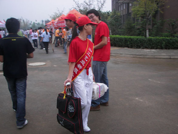 “白衣天使”也积极为迎新贡献力量,他们在校园内设置摊点,备有常用药品,急用药品等,以防新生感冒、过敏、水土不服等突发事件的发生,以便新生尽快适应新的环境。