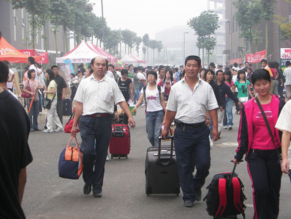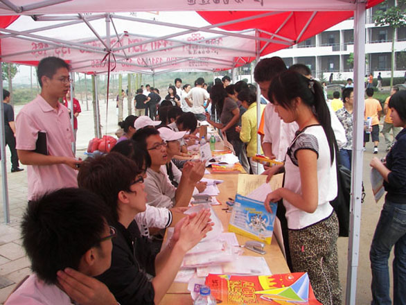 由学生处、团委及各二级学院组织的志愿者,分布在学校的各迎新点,为新生的入学提供全程的服务。9月14日早上6:40,迎新的第一辆大巴到达学校,吹响了迎新工作的号角。负责迎接的志愿者有的拿着喇叭,有的高举指示牌,引导新生们下车。新生、家长众多,行李繁多,使得车内异常拥挤,但在志愿者的帮助下,下车井然有序。由学生处组织的志愿者主要分布在学校的西侧门门口、迎新大巴停车处,负责新生的引领、行李搬运和问询工作。公寓的志愿者负责新生被褥的退还工作,分工明确,井然有序。各二级学院的志愿者,主要在本学院的新生报到处。负责收取录取通知书、准考证等所需的入学证件,告诉新生所在公寓楼的地点及宿舍的门牌号,并发放宿舍钥匙、饭卡,帮忙把行李提到宿舍。清晰的流程使得新生的入学秩序井然,大大加快了新生报到的速度,达到了事半功倍的效果。