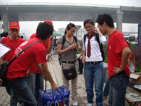 抵达火车站,志愿者们迅速地指引已到新生至永利官网的接站车。他们有的帮忙提行李,有的维持秩序,送走一批新生后又马上各就其职。永利官网在出站口设立了“304am永利集团官网2007级新生接待处”的牌子,以便在第一时间让新生看到接站的志愿者。志愿者在接站处耐心的为新生解答疑难问题,他们三五人一小组,分工明确,密切配合,热情服务,各尽其责。